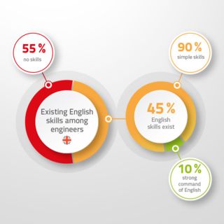 専門分野において、ますます国際化が進むなかで、エンジニアにとって英語が必須であるにもかかわらず、現在の調査ではビジネスにおいて支障なく英語を話す人はごく僅かであることが示されています。