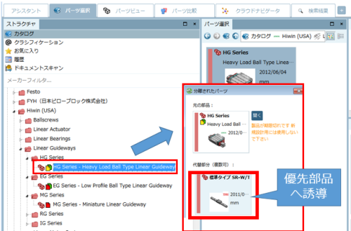 購買部門は優先して使用して欲しいサプライヤ、パーツにマークをつけて、エンジニアが部品を利用するとき誘導することができます。