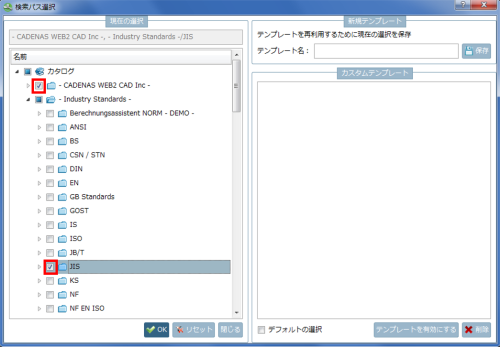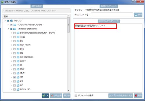 作成されたテンプレートは、どの検索(全文検索、3D形状検索、トポロジ検索、など)でも使用できます。