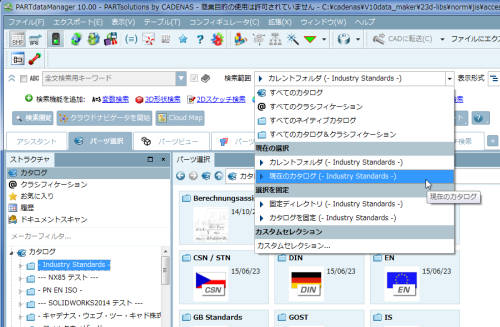⇒ここでは「標準規格」にあるというのはわかっているので、標準規格フォルダの「- Industry standards -」を選択して、検索範囲を「現在のカタログ」に絞ります。