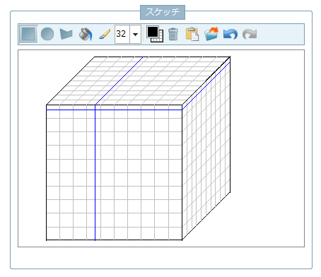 ⇒このとき以下のようなスケッチャーが表示されます。ここに今頭に浮かんでいる「なにか」のぼんやりした形を描きます。Windowsの「ペイント」のようなペイントソフトと同じ要領です。