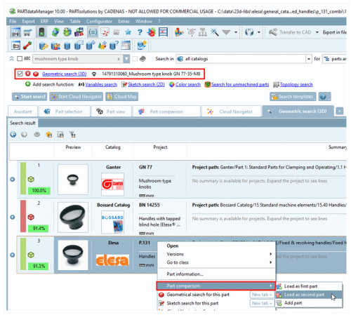 ほとんど同一の2つ部品が、必ず同じ名称であるとは限りません。「検索といえばテキスト検索」という固定観念は除きもう一歩先へ、テキスト検索に続いて3D類似形状検索を実行してみましょう。