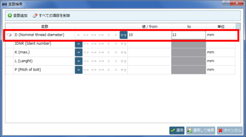 全文検索で特定の寸法、パラメータを指定する(上記の例です)