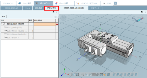 2.パーツビューで「アセンブリ」タブを選択します。