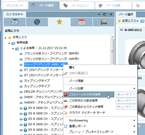 例えばそのリスト内のパーツを使って形状検索を実行するなど、です。