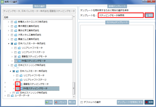 ⇒ここではステッピングモーター関連のフォルダにチェックを入れています。
