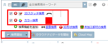 3.図のように、色とスケッチを指定できたら「検索開始」をクリックし、検索します。