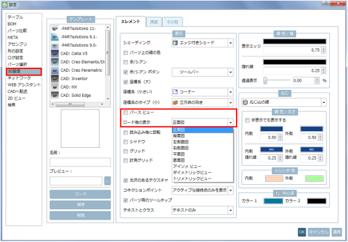 部品ロード時のデフォルトビューを変更するには?