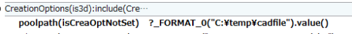 現在は「?_FORMAT_0(“$CADENAS_DATA/pool/ugnx”).value()」という値ですが、これを変更します。例えば「C:\temp\cadfile」というフォルダに保存したい場合は次のように変更します。