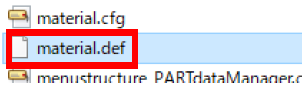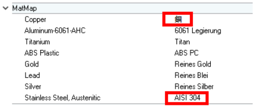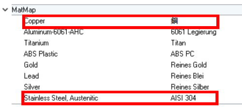 ただし上記は翻訳後なので翻訳前の内部名を指定する必要があります。内部名は「%CADENAS_SETUP%\material.def」で検索することができます。
