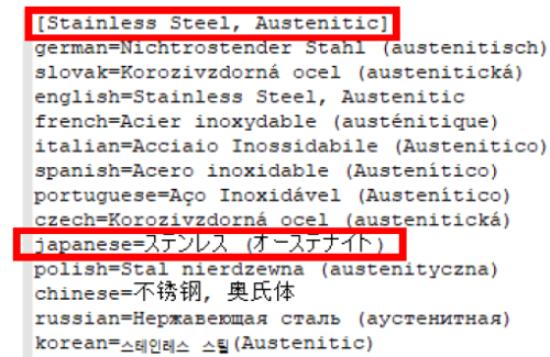 同様にして「ステンレス(オーステナイト)」も調べます。
