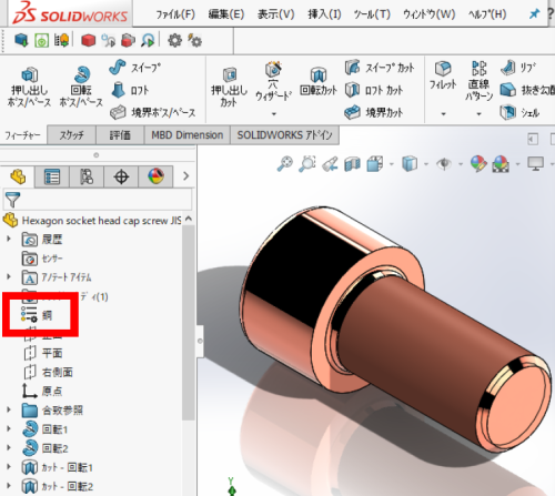 SolidWorks 側の材料名がわかったので、値として記述します。
