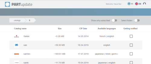 本サイトの更新情報と、弊社PARTsolutionsサポートサイトのカタログ更新情報は一致していません。本機能で通知されるのはあくまでPARTupdateが更新されたときです。