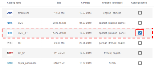 5.通知対象としたいカタログの右側にある「Getting notified」にチェックを入れます。