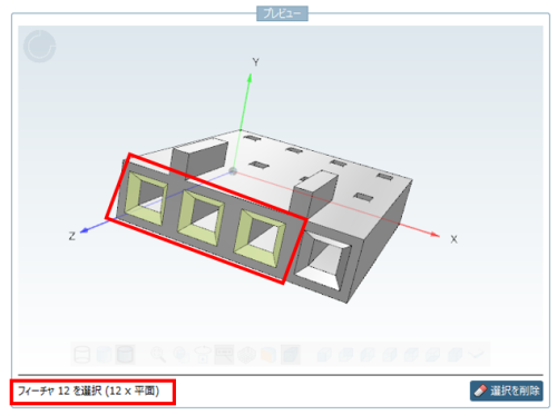 以下の図のようにコネクタ部分の複数の面を選択して検索します。選択されたコネクタ部分を持つ他の部品を検索したいという意図です。