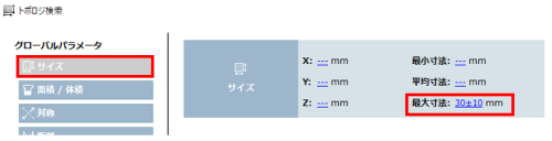 テキスト検索では、サイズを追加で指定すると利便性が高まることがあります。ここではトポロジ検索を利用すると良いでしょう。サイズパラメータを設定します(可能ならば許容範囲を追加したほうがよいです)。