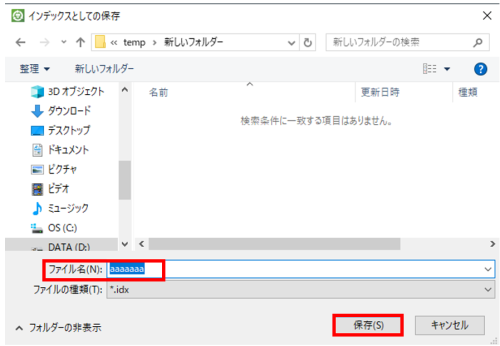 4.「インデックスとしての保存」ダイアログが表示されるので、ファイル名を適宜指定し「保存」をクリックします。